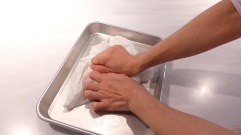 - 冷凍よもぎを使う場合は、6~8gほどボウルに置き、解凍しておきます