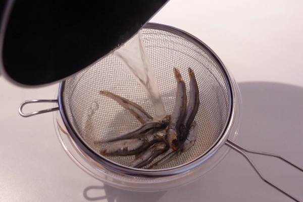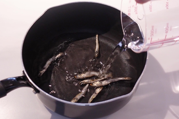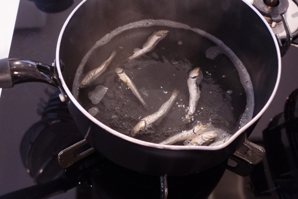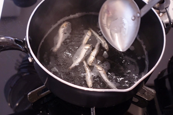 ※丁寧に仕上げたい場合は、煮干しの内臓と頭を取り除いてから使用します