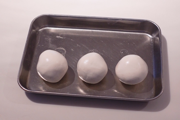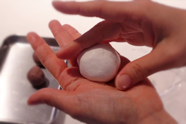 2. こしあんは3つに分け、10gずつ丸めておきます