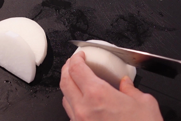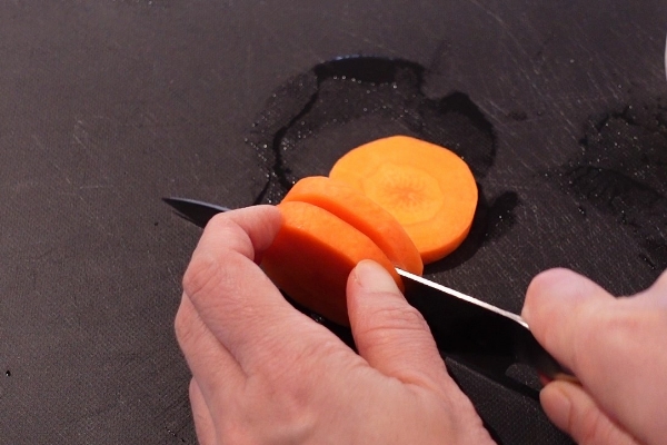 1. 大根は半月型6枚、人参は丸型3枚にカットします
