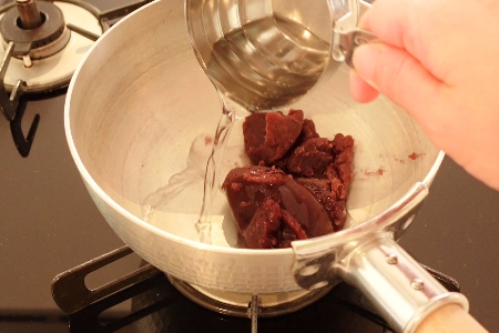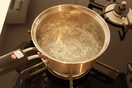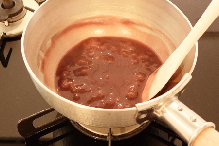 鍋にこしあんと水を入れて弱火にかけ、沸騰直前で火を止めます。氷水にあてて粗熱を取り、冷蔵庫で冷やします。