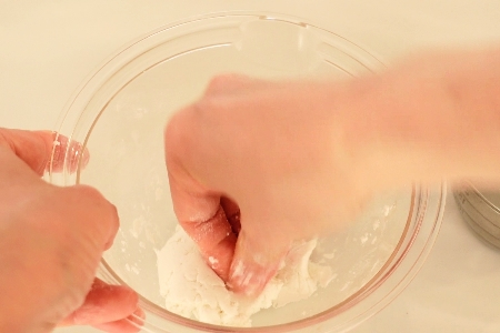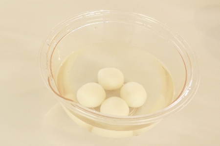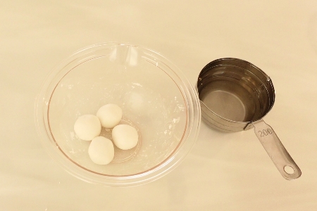 白玉団子:白玉粉に水を加えて耳たぶ程度の柔らかさになるまでこね、4等分して丸めます。