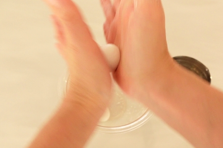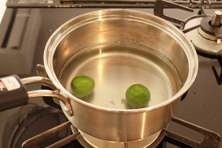 沸騰した湯をやや弱め、白玉をゆでます。団子が浮いてからさらに1分ゆでて、冷水に取ります。ぬめりをやさしく洗い流します。抹茶白玉も同様に。