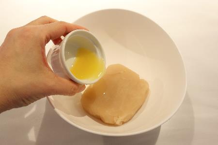 - ボウルに白あん80gを入れ、絞った果汁8gとすりおろした皮を加えます