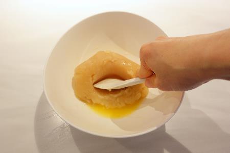 作り方はとてもシンプル。白あんにフレッシュな果汁と皮を加えるだけ。写真のようにふわっと上品に仕上がるゆずあんは、薯蕷まんじゅうや求肥の餡にぴったりです。