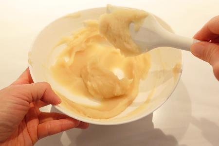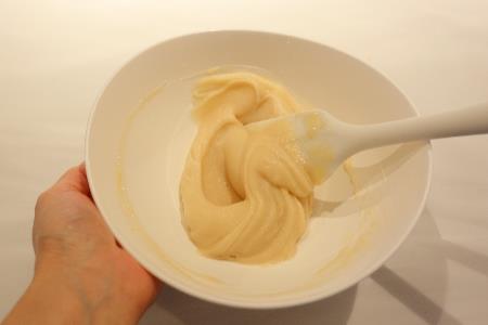 - ゴムベラで混ぜ合わせ、滑らかでぽってりとした状態になったら、冷まし、完成です