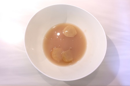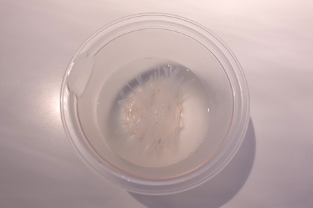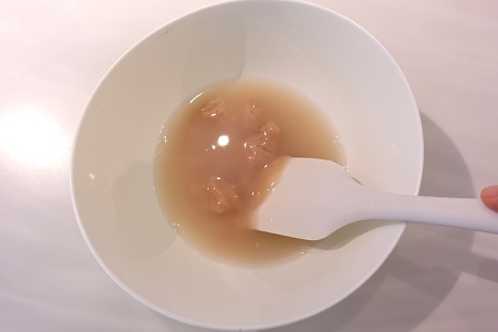 - 寒天をボウルに入れ、充分な量の水を入れ、6時間以上置きます