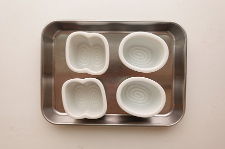 - 温度が40℃程度(ぬるま湯)まで下がったら、型に流し入れます