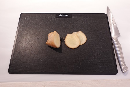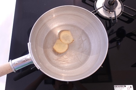 - 生姜を洗い、2~3mm厚で2~3枚スライスします