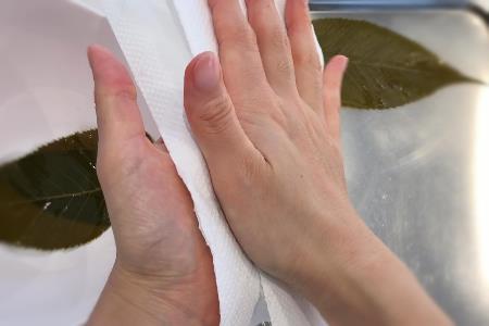- 水気をペーパーで拭き取り、バットに並べ、乾かしておきます