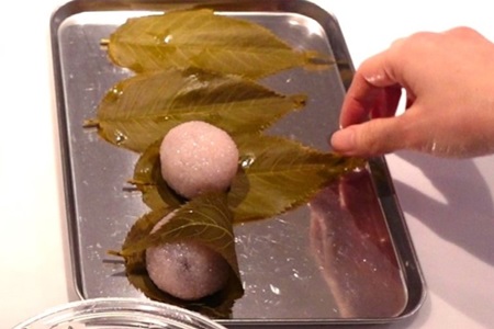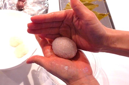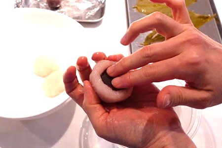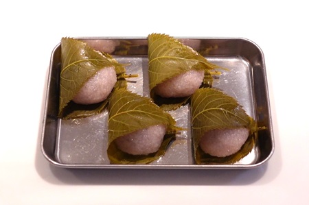 - 最後に俵型に整え、桜の葉で巻いたら完成です